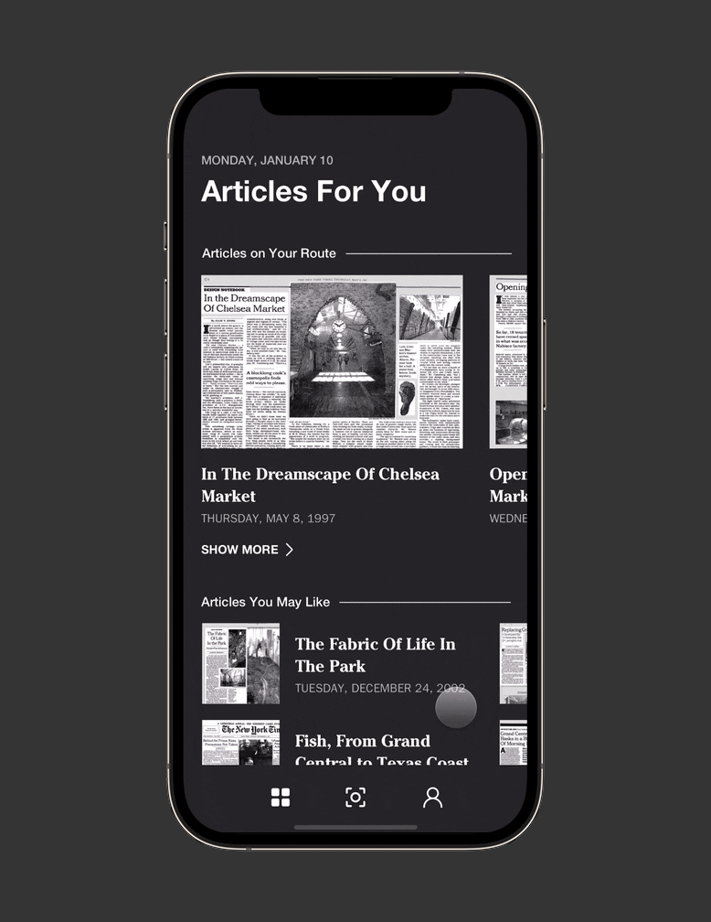 NYT City ARchive is an augmented reality experience that anchors New York Times archive stories in the city’s streets, letting users explore history exactly where it unfolded.